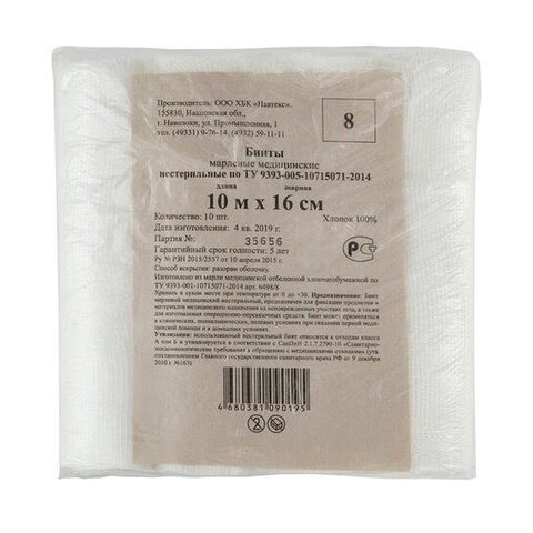 Бинт марлевый нестерильный NEW LIFE КОМПЛЕКТ 10 шт., 10 м х 16 см, плотность 36 (±2) г/м2