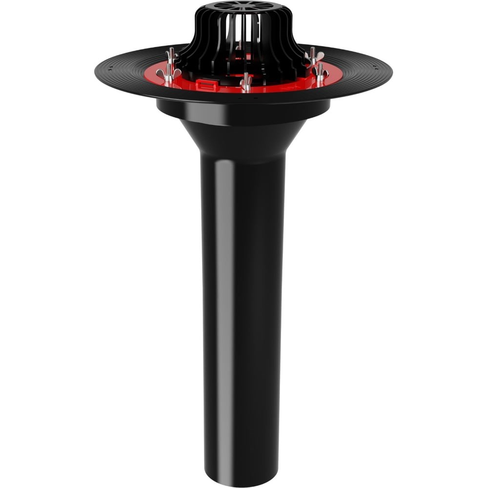 Битумная воронка Fachmann VMPro 110x590 мм, без обогрева 01.174 - это кровельная воронка серии VMPro с листвоуловителем и увеличенным металлическим прижимным фланцем для неэксплуатируемой кровли, с диаметром выпускного патрубка 110 мм, предназначена для отвода дождевой и талой воды с плоских кровель во внутренний водосток ливневой канализации. Воронка включает в себя увеличенный прижимной фланец, по сравнению с серией VM, и закладное изделие, размещенное в корпусе воронки, за счет которого обеспечивается стабильное сопротивление извлечению крепежных элементов при монтаже воронки. Также, в корпусе воронки присутствуют ребра, предотвращающие вихреобразования жидкости во время слива, благодаря чему обеспечивается постоянный и непрерывный поток жидкости без потери пропускной способности. Изделие применяется с гидроизоляционными материалами на основе модифицированного битума. Поскольку воронка изготавливается из полипропилена, ее можно использовать в широком диапазоне температур, а благодаря своим физическим и механических свойствам, обеспечивается максимальная производительность на протяжении всего срока служба.