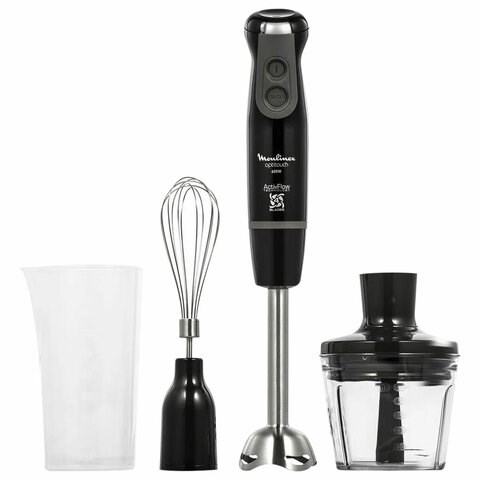 Блендер погружной MOULINEX Optitouch DD833810, 600 Вт, 16 скоростей, 3 насадки, стакан, черный, 7211002825