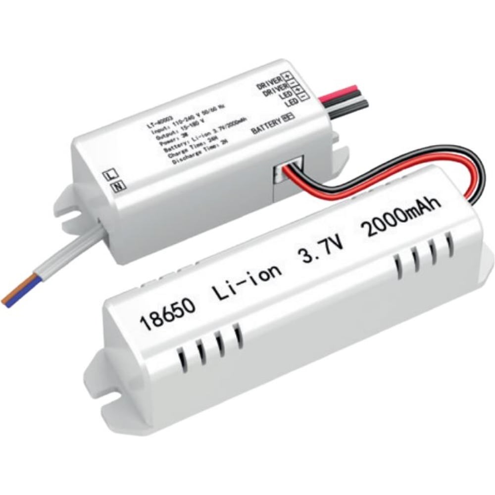 Блок аварийного питания EK51 для подключения к светильникам с целью обеспечения работоспособности в случае отключения питания. Батарея Li-io 3.7В 2000мАч 18650. Время работы от батареи до 2-х часов. Время зарядки батареи 24 часа. Для разборных светильников. Защита от переразряда и перезаряда Нагрузка от 3 до 50Вт В аварийном режиме выдает мощность 3Вт до 2ч. Возможность подключения как в постоянном, так и не постоянном режиме Наклейка A в комплекте для маркировки светильников Время полной зарядки 24ч Блок 67х25х20мм, батарея 92х22х22мм