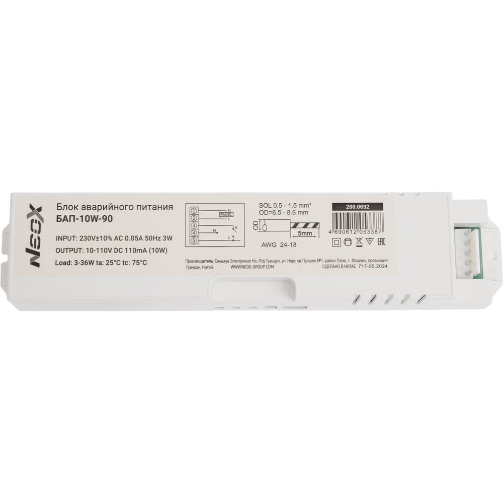 Блок аварийного питания БАП-10W-90 используется для обеспечения бесперебойного питания светодиодных панелей NEOX ДВО-02-EMERGENСY в случае непредвиденного отключения питающей сети.