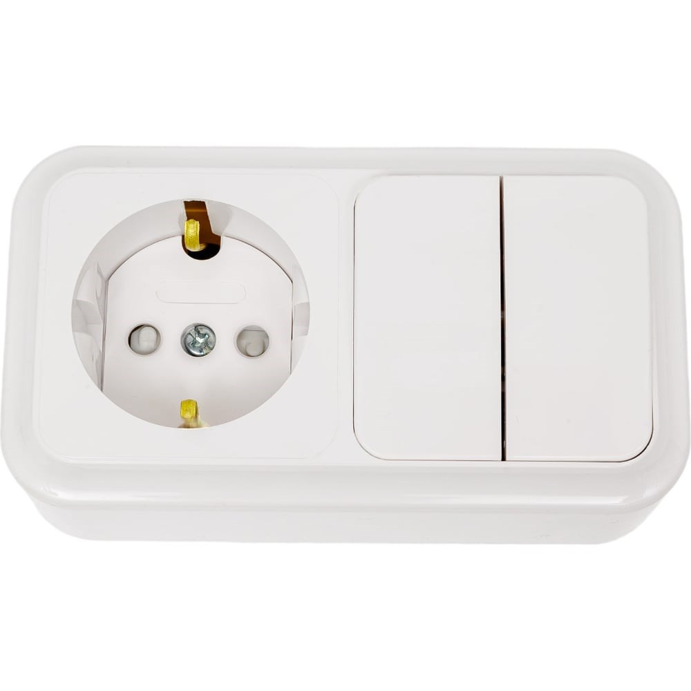Блок Bylectrica 2 выключателя + розетка с заземляющим контактом ОУ со шторкой, серия ПРАЛЕСКА, белый, 2В-РЦ-579