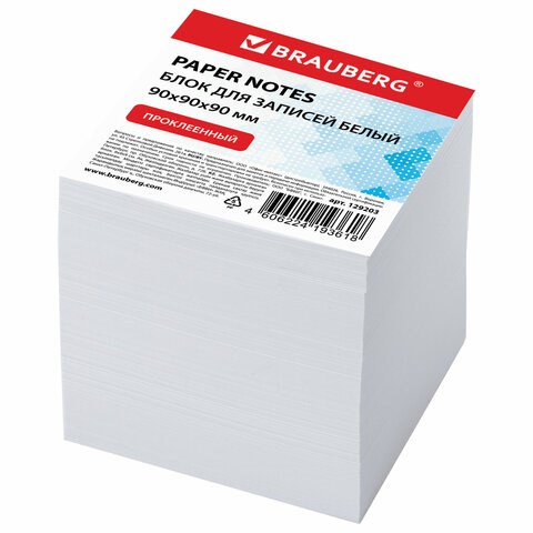 Блок для записей BRAUBERG проклеенный, куб 9х9х9 см, белый, белизна 95-98%, 129203