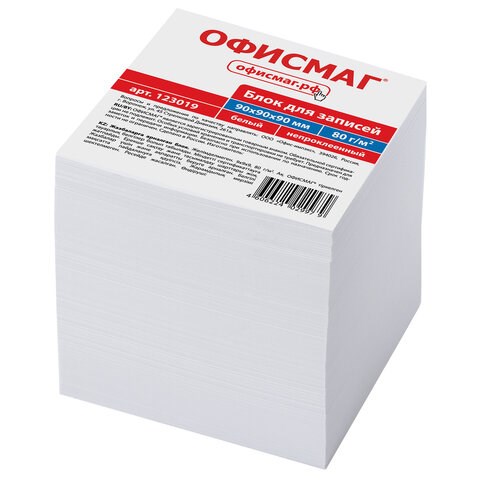 Блок для записей непроклеенный, 9х9х9 см, плотность 80 г/м2, белизна 95-98%, ОФИСМАГ, 123019