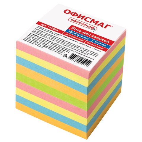 Блок для записей ОФИСМАГ непроклеенный, куб 9х9х9 см, цветной, 124444