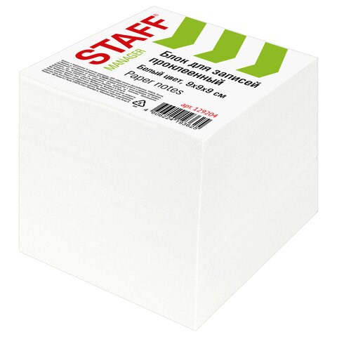 Блок для записей проклеенный, 9х9х9 см, плотность 65 г/м2, белизна 90-92%, STAFF, 129204