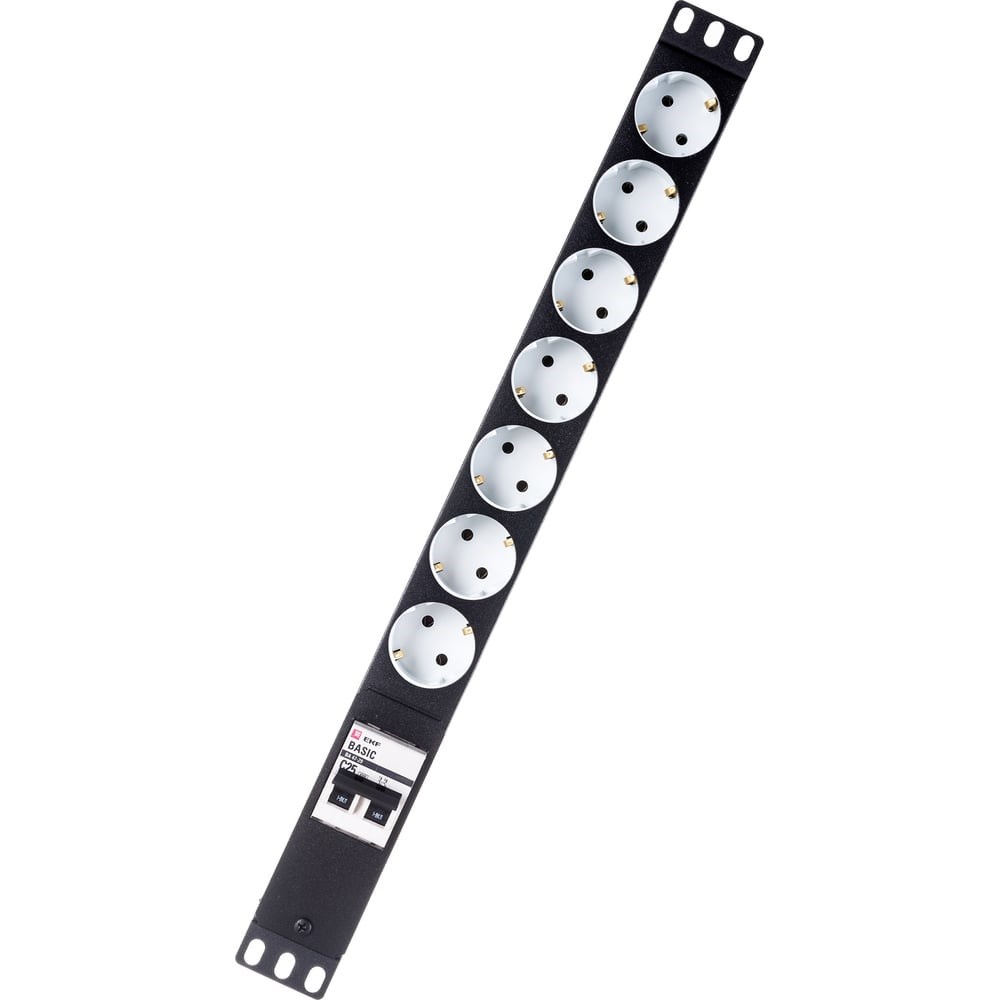 Блок электрических розеток TLK 19, металлический корпус TLК-RS07M-C25-BK - это электротехническое устройство в стандарте 19" с высотой 1U. Имеет 7 евророзеток (Schuko), которые соединены латунными шинами питания марки Л63Т, сечением 6 мм2 каждая. Блок имеет автоматический выключатель 2/25А (по предварительному заказу модель автоматического выключателя может быть другая). Суммарный ток нагрузки — не более 25А. В задней части блока розеток имеется место для ввода кабеля питания (поставляется отдельно). Корпус изготовлен из оцинкованной стали толщиной 0,7 мм, все металлические элементы блока розеток заземлены, также имеется элемент крепления внешнего заземления (отверстие с резьбой М4).