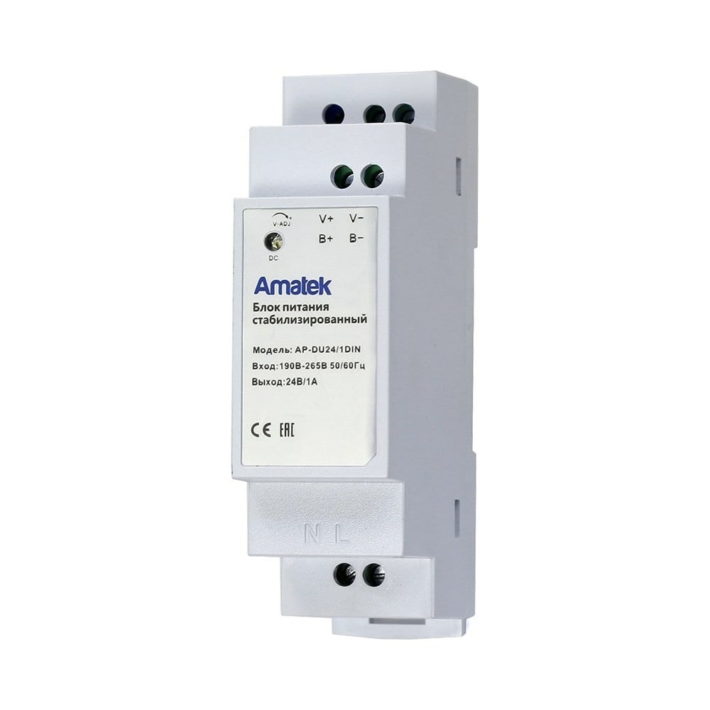Блок питания Amatek AP-DU24/1DIN 24В / 1А резервированный, стабилизированный 7000706 предназначен для обеспечения потребителей бесперебойным электропитанием с номинальным стабилизированным напряжением 24В постоянного тока и током потребления до 1А. Стабилизированный блок питания формирует выходное напряжение для питания нагрузки и осуществляет заряд внешней АКБ (при наличии). При отключении напряжения питающей сети блок питания автоматически переходит на резервное питание от внешней АКБ (при наличии). Электропитание от сети переменного тока 50 Гц напряжением от 190 В до 265В. Источник питания устанавливается на DIN-рейку. Блок питания предназначен для установки в помещении и рассчитан на круглосуточный режим работы. Отличительные особенности Amatek AP-DU24/1DIN: Выход: = 24В, ток 1А, 24Вт Регулировка выходного напряжения 24-28В Вход: ~190-265В, 50Гц, до 0,5А Возможно подключение внешней АКБ: 4Ач, 12В, 2шт Защита от перегрузки по выходу 1,2А Защита от повышения напряжения по выходу 30В Автоматическое восстановление выходного напряжения после снятия перенапряжения или перегрузки; Пульсация напряжения на выходе не более 200 мВp-p Эффективность (КПД) 88% Пластмассовый корпус 27×92×56 мм с возможностью монтажа на DIN-рейку; Эксплуатация: от -20°С до +50°С, влажность 10 - 90% RH.