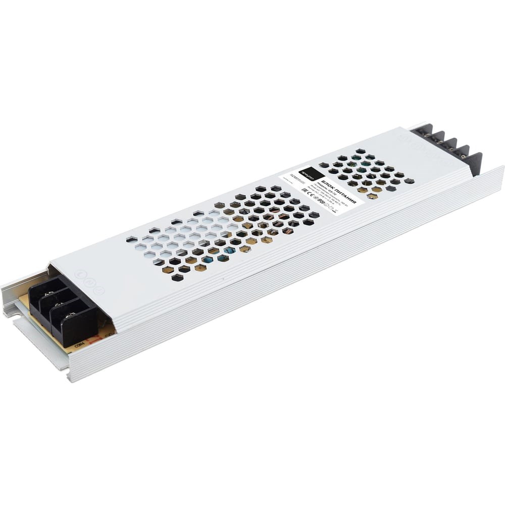 Блок питания Apeyron обладает на выходе постоянным током с напряжением 24В, что делает его идеальным источником питания для таких изделий, как светодиодная лента, светодиодные лампы, линейки и модули с рабочим напряжением 24В. Компактный, алюминиевый корпус с размерами 250х53х22мм позволит найти место для монтажа в любом интерьере, спрятать в местах с ограниченным пространством. Также он будет легок в подключении благодаря клеммам, снабженным маркировкой на корпусе. Кроме всего прочего этот блок питания, благодаря входному фильтру, будет работать при скачках напряжения в диапазоне 185-253В, в то время как выходной фильтр сглаживает пульсацию и защищает ваши глаза. Данный блок питания для светодиодной ленты имеет степень защиты от пыли и влаги IP20, а это значит, что его рекомендуется устанавливать в сухих и проветриваемых помещениях.