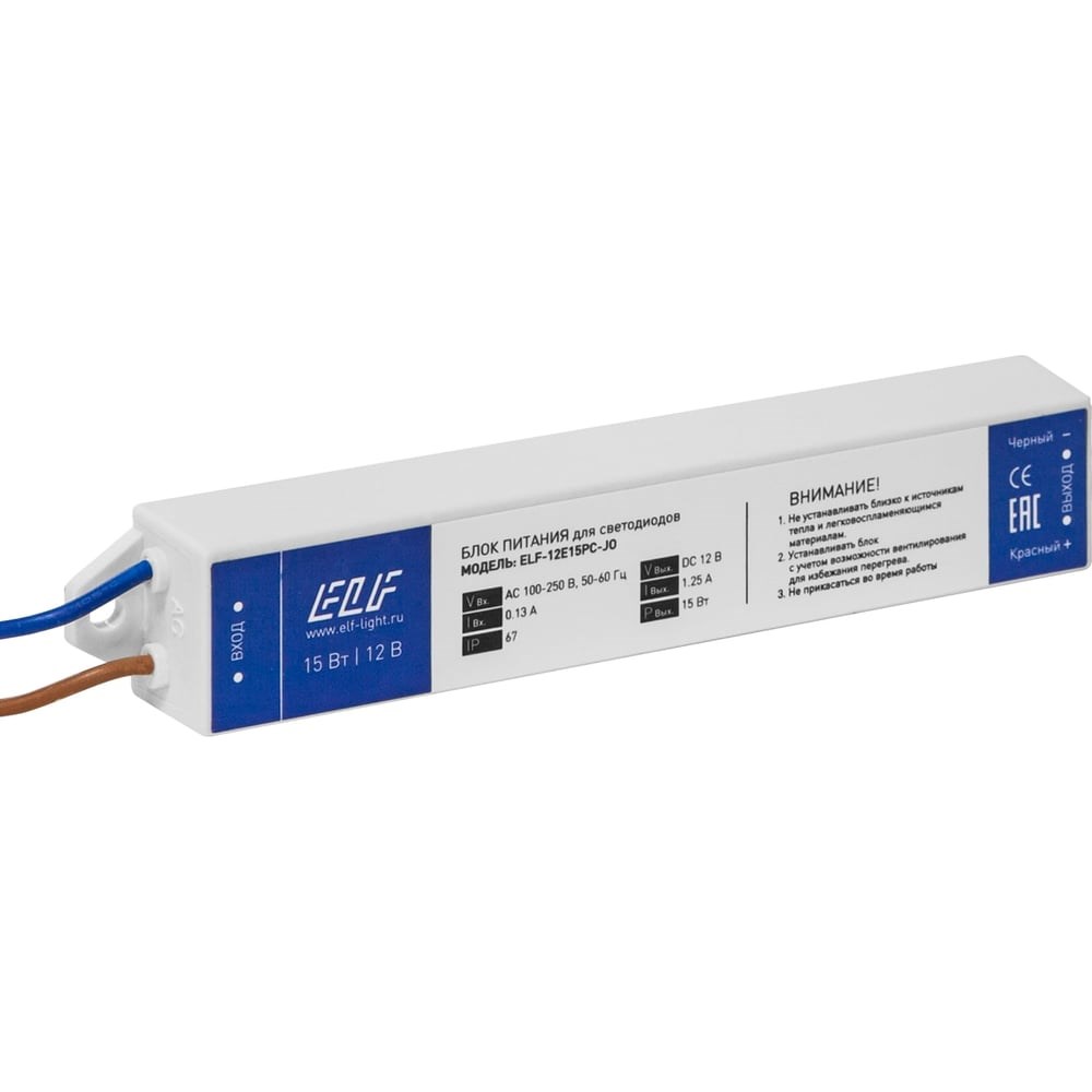 Блок питания ELF, 12В, 15Вт, пластик, IP67 12E15PC-JO