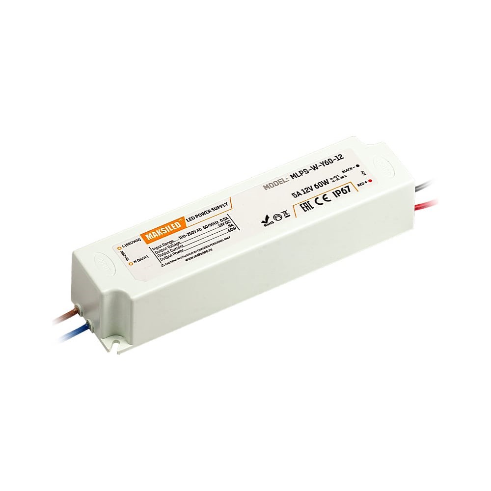 Блок питания MAKSILED 12В, 60Вт, 5А, IP67, пластик, 166х42х34мм MLPS-W-Y60-12 отличается высокой надежностью и компактными размерами. Он незаменим для питания светодиодных осветительных приборов и других устройств. Блок питания имеет защиту от короткого замыкания, перегрузки, перегрева. Автоматический перезапуск при восстановлении нормальных условий. Для обеспечения долгосрочной и стабильной работы б/п рекомендуем при выборе устройства предусматривать запас по мощности примерно в 20%.
