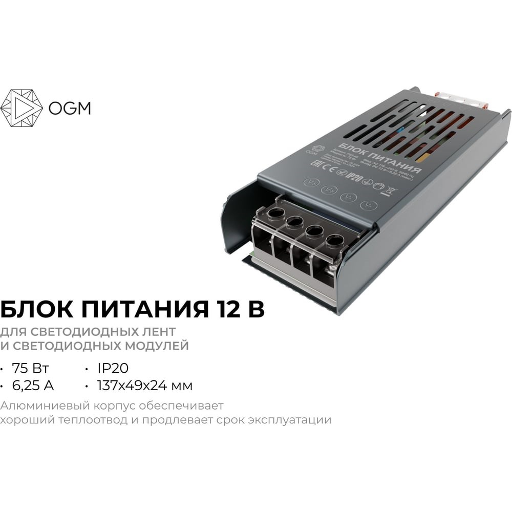 Блок питания с номинальной мощностью 75Вт обладает на выходе постоянным током с напряжением 12В, что делает его идеальным источником питания для таких изделий, как светодиодная лента, светодиодные лампы, линейки и модули с рабочим напряжением 12В.Компактный, алюминиевый корпус с размерами 137х49х24мм позволит найти место для монтажа в любом интерьере, спрятать в местах с ограниченным пространством. Также он будет легок в подключении благодаря клеммам, снабженным маркировкой на корпусе.Блок питания, благодаря входному фильтру, будет работать при скачках напряжения в диапазоне 175-240В, в то время как выходной фильтр сглаживает пульсацию и защищает ваши глаза.Имеет степень защиты от пыли и влаги IP20, а это значит, что его рекомендуется устанавливать в сухих и проветриваемых помещениях.