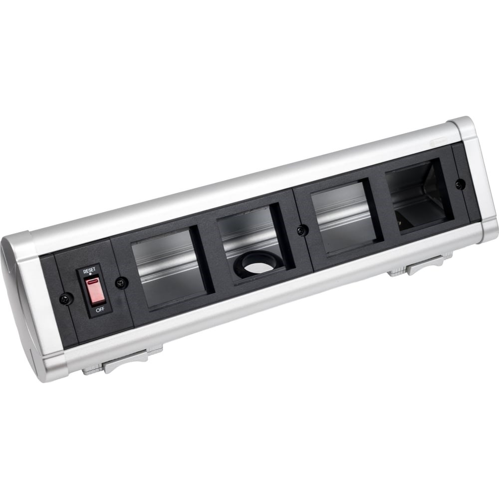 Дополнительные технические характеристики: Материал корпуса: алюминий. Материал суппортов: АБС-пластик. Количество постов: 4 поста (стандарт 45х45мм) Алюминиевый корпус с крышкой. Специальная шторка.