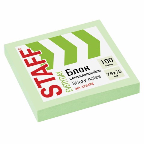 Блок самоклеящийся (стикеры), STAFF, 76х76 мм, 100 листов, зеленый, 126498