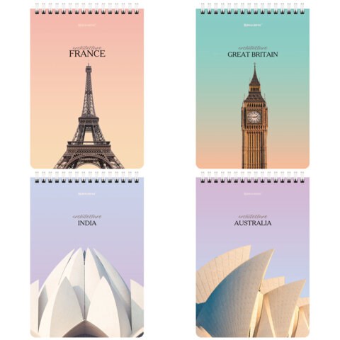 Блокнот А5 (146х206 мм), 80 л., гребень, картон, жесткая подложка, клетка, BRAUBERG, "Архитектура", 114382