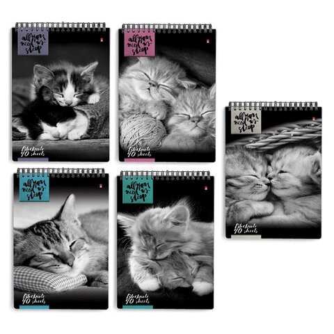 Блокнот А5, 40 л., гребень, ламинированный картон, клетка, Альт, "Кошки", (5 видов), 3-40-462