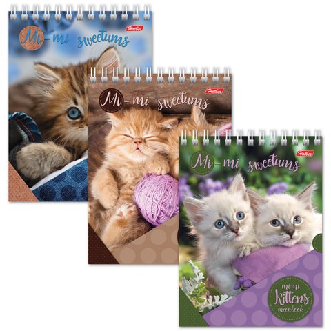 Блокнот МАЛЫЙ ФОРМАТ А6 110х145 мм, 40 л., гребень, лакированная обложка, клетка, HATBER, "Милые Котята", 004667, 40Б6B1гр