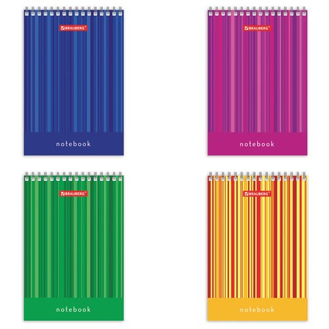 Блокнот МАЛЫЙ ФОРМАТ А6 97х145 мм, 40 л., гребень, картон, клетка, BRAUBERG, "Полоски", 129822