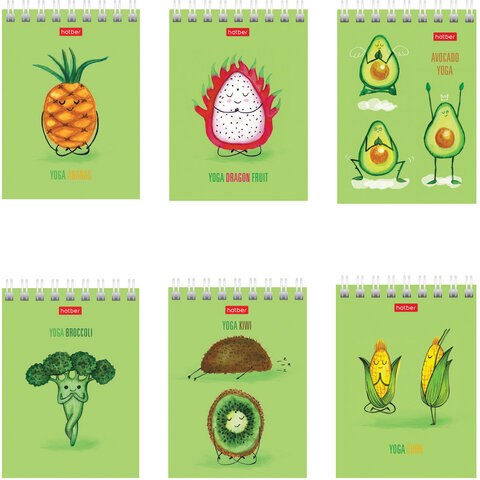 Блокнот МАЛЫЙ ФОРМАТ А7 75х105 мм, 60 л., гребень, картон, клетка, HATBER, "Йога-Фитнес", 066625, 60Б7В1гр
