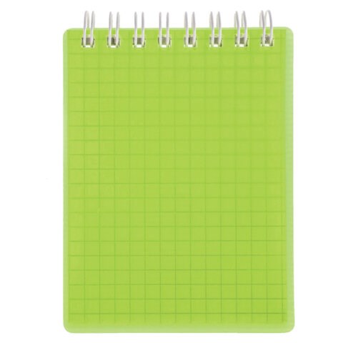 Блокнот А7 формата. Количество листов: 80. Обложка: пластик. Внутренний блок: офсет 60 гр, клетка. Скрепление: гребень. Скрепление 'гребень' дает возможность раскрывать блокнот на 360 градусов.