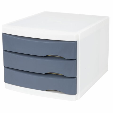 Бокс с 3 выдвижными лотками, корпус светлый, лотки серые, 235х300х355 мм, BRAUBERG "Office-Expert", 238040