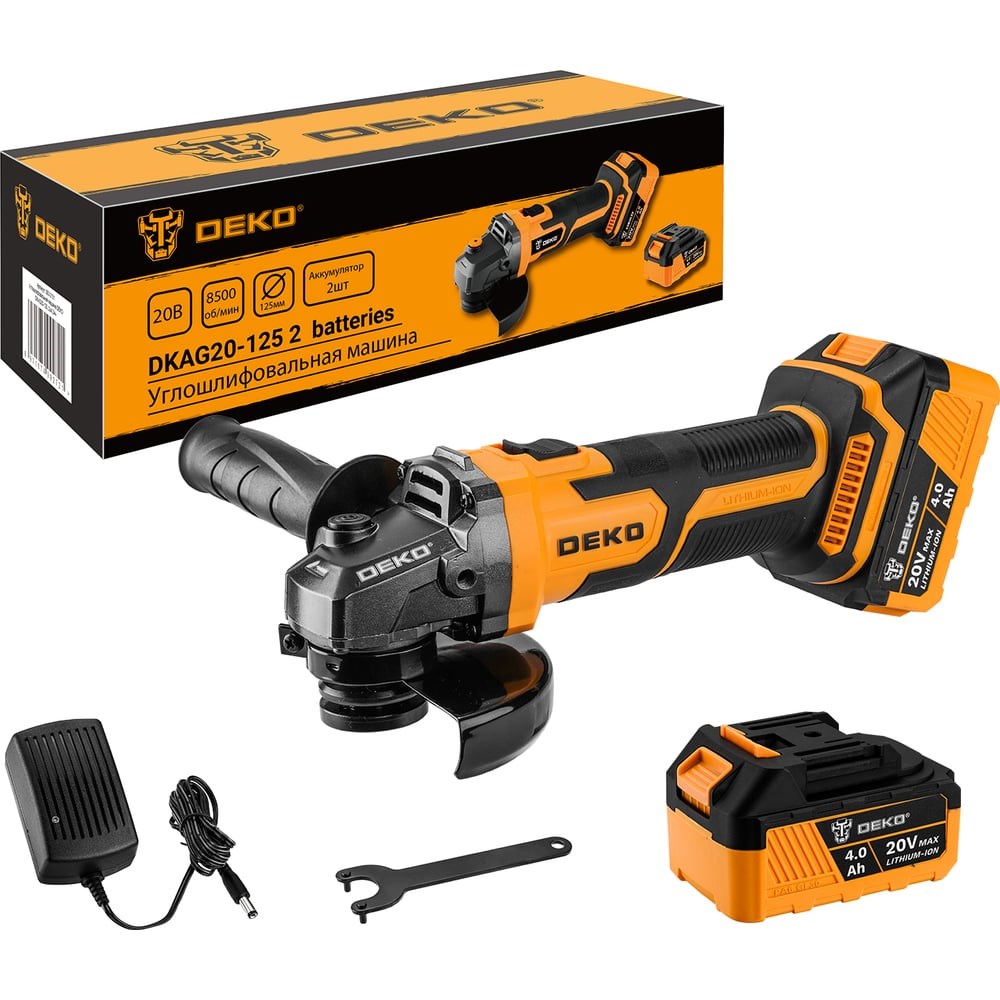 Углошлифовальная машина DEKO DKAG20-125 - универсальный инструмент для резки, шлифовки и черновой обработки металла и камня. С помощью определенных приспособлений углошлифовальную машину можно также использовать для чистки и шлифования. Специальный кожух обеспечит безопасность оператора во время работы. Дополнительная рукоятка может быть установлена слева или справа в зависимости от предпочтений оператора. Резиновое покрытие рукоятки обеспечивает комфортную работу, инструмент не скользит в руке. Функция блокировки шпинделя обеспечивает быструю и лёгкую замену оснастки. Технические характеристики: Напряжение аккумулятора - 20В Диаметр диска - 125 мм Посадочный диаметр - 22.2 мм Частота вращения - 8500 об/мин Емкость АКБ - 4.0 Ач Тип аккумулятора - Li-Ion, Makita type Тип аккумулятора: Makita-type Li-ion Инструмент совместим с аккумуляторами: - DEKO UNV 20 - Makita 18В Li-Ion тип BL-1830, BL-1840, BL-1850, BL-1860 - С аккумуляторами от щеточного инструмента DEKO, произведённый не ранее 2024 года
