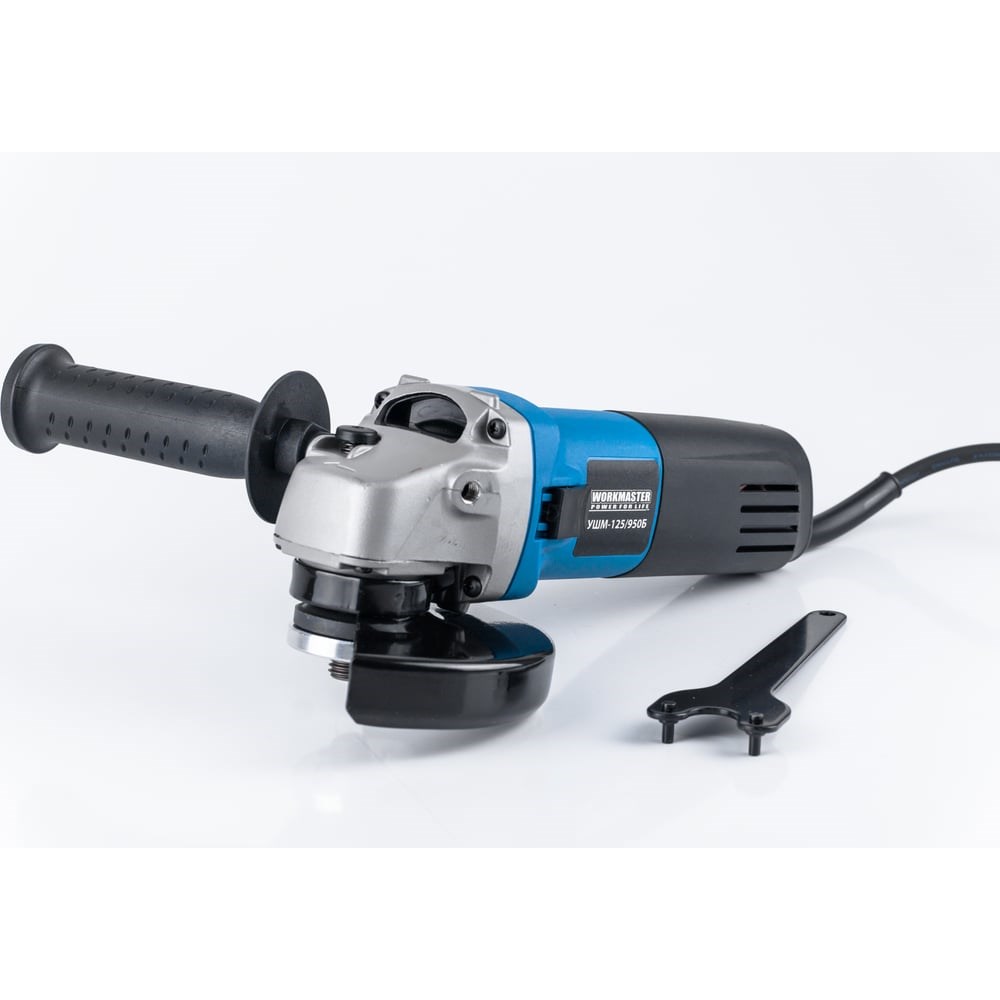 Угловая шлифовальная машина WorkMaster УШМ-125/950Б применяется для зачистки и шлифования металла. Диск прикрыт ударопрочным кожухом. Он защищает пользователя от повреждений. Дополнительная боковая рукоятка устанавливается в двух положениях для удобства работы.