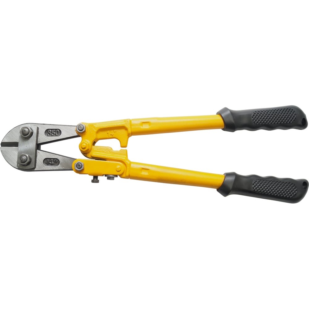Болторез Pobedit 14- 350 мм, углеродистая сталь 2555735 подходит для перекусывания стали диаметром до 5-7 мм и твердостью до 30 HRC. Инструмент оснащен упорами - они не позволяют смыкаться рукояткам до конца. Это исключает риск защемления пальцев. Специальные накладки на рукоятках облегчают приложение значительных усилий.