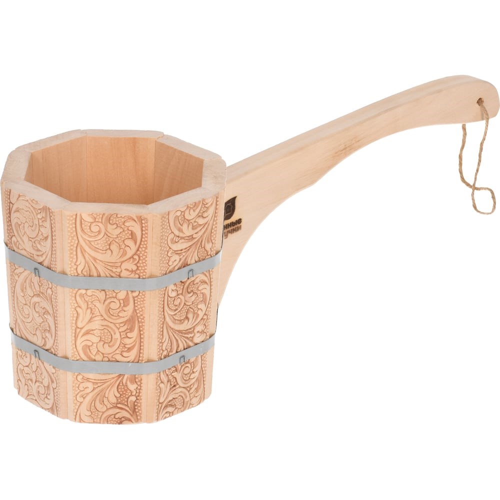 Бондарный ковш-черпак с орнаментом Цветы Банные Штучки 1.5 л 33426 используется в бане и сауне. Бондарные изделия с узорами - идеальное качество, имитирующее ручную резьбу. Одинаковые симметричные рисунки без сколов, заусениц и дефектов создают эффект коллекционного раритета. Изготовлен из липы. Прочный и при нагреве выделяет приятный аромат.
