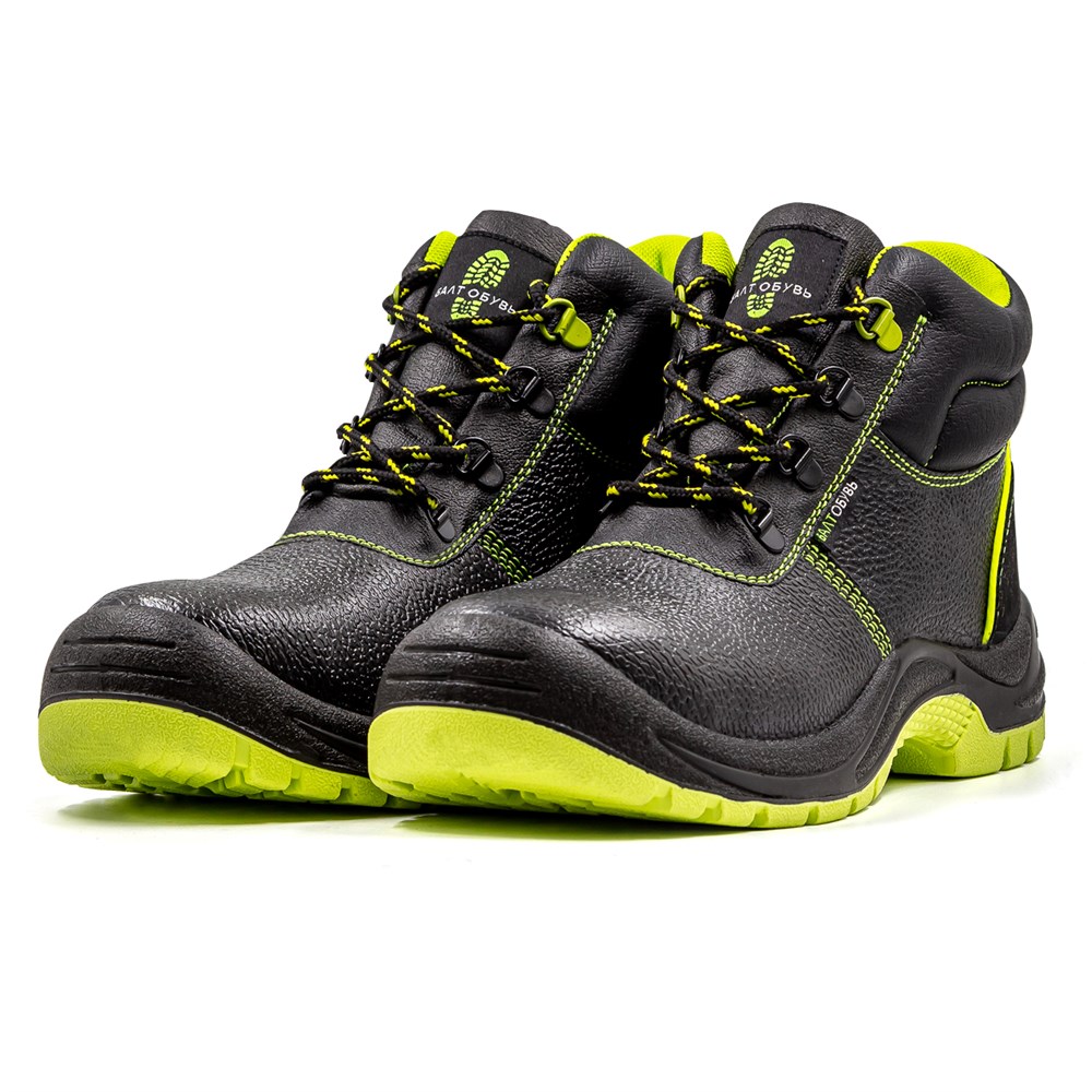Демисезонные ботинки на двухслойной ПУ/ТПУ (полиуретановой) подошве. Обувь изготовлена из кожи устойчивой к воздействию агрессивных внешних факторов. Носок защищен металлическим подноском с ударной нагрузкой до 200 Дж. Подкладка ботинок из дышащей трехслойной 3D AirMesh ткани цвета лайм. Подошва изготовлена литьевым методом, устойчива к воздействию кислотно-щелочных веществ (до 20%), масло-бензольных соединений и нефтепродуктов. Рабочая температура эксплуатации ботинок от -35°С до +85°С. Дополнительный комфорт для ног и защиту от ударных нагрузок обеспечивают амортизатор в пяточной части ботинка, усиленный протектор, дополнительная защита носовой части и мягкий кант, защищающий голеностоп. Глухой клапан предотвращает попадание нетоксичной пыли, влаги и грязи внутрь. Анатомическая стелька из ЭВА обеспечивает комфорт носки и снижает нагрузку на суставы ног