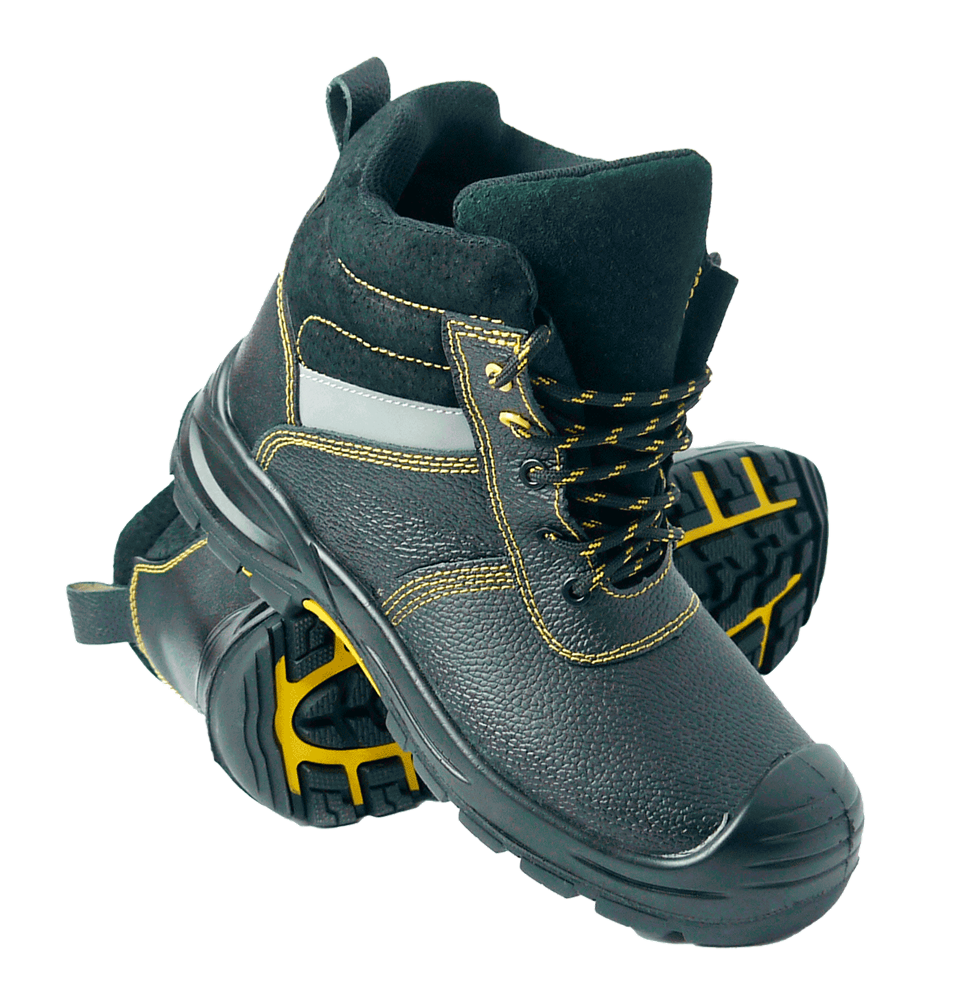 Ботинки кожаные с мягким кантом, глухим клапаном и поликарбонатным подноском с ударной прочностью 200Дж. Подошва двухслойная