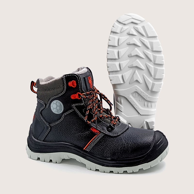 Материал верха обуви – натуральная кожа с отделкой из современных обувных материалов, что обеспечивает необходимые защитные функции обуви и значительно уменьшает массу. Внутренний поликарбонатный подносок данной модели, выдерживает нагрузку до 200 Дж. Флисовая подкладка сохраняет тепло и отводит влагу. Подошва двухслойная ПУ-ТПУ — маслобензостойкая (МБС), кислотощелочестойкая (КЩС), устойчива к воздействию агрессивной среды – масел, нефтепродуктов, щелочей концентрациями до 20%. Промежуточный слой из полиуретана обладает амортизирующими свойствами, гасит ударные нагрузки, а также придает обуви легкость, комфортность и повышенные теплозащитные свойства. Ходовой слой изготовлен из износостойкого термопластичного полиуретана ТПУ с улучшенным сопротивлением скольжению, обладающего стойкостью к деформациям и стиранию.