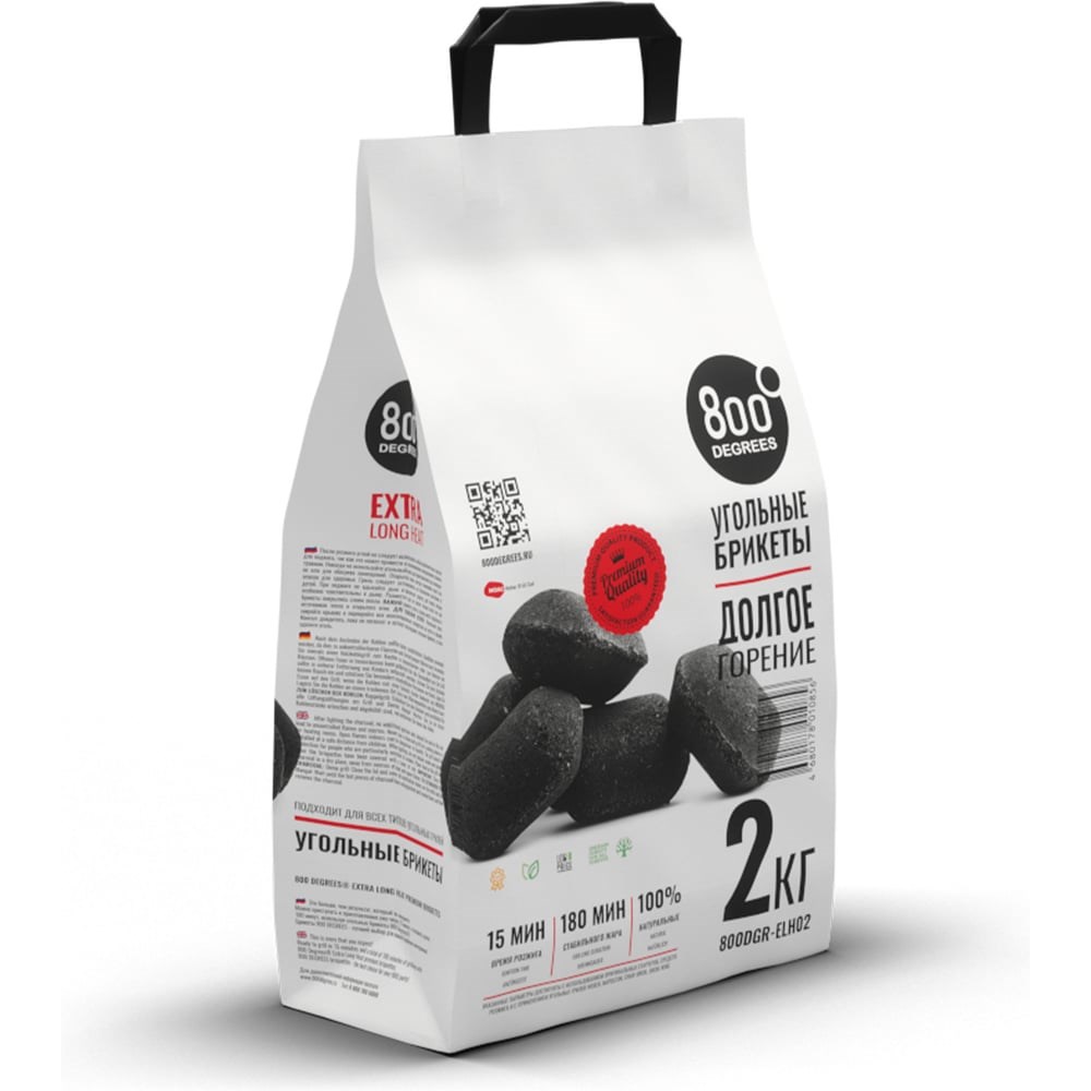 Брикеты угольные 800 Degrees Extra Long Heat в многослойных, плотных бумажных мешках производятся по уникальной технологии из высококачественного древесного угля лиственных пород деревьев. Брикеты и кусковой уголь 800 Degrees наилучшим образом подходят для грилей и смокеров Weber, Napoleon, Char-Broil, Broil King, Carbo, Big Green Egg, Kamado Joe, Monolith, Oklahoma Joe’s, Grillvett, Firemagic и других производителей и типов. При розжиге в печах, грилях и хосперах, при необходимости рекомендуем разбавлять с кусковым углем Lump Charcoal для понижения жара. Для быстрого розжига используйте оригинальные брикеты и роллы для розжига, а также стартер Chimney Starter XL из нержавеющей стали с ручкой из натурального Зебрано. Продукция сертифицирована и производится из отходов лесопереработки, а также засохших деревьев из Карелии, Алтая и Сибири. Производство древесного угля 800 Degrees не наносит ущерба экологии, а готовая продукция отличается от аналогов низкой зольностью, высокой теплоотдачей, отсутствием запаха и длительным ровным горением. Брикеты отлично подходят для копчения и режимов low-n-slow. Серия Extra Long Heat Briquettes имеет следующие показатели и характеристики: 20 мин время розжига 180 мин стабильного жара 100% натуральный и чистый продукт Состав: высококачественный древесный уголь лиственных пород деревьев и кукурузный крахмал.