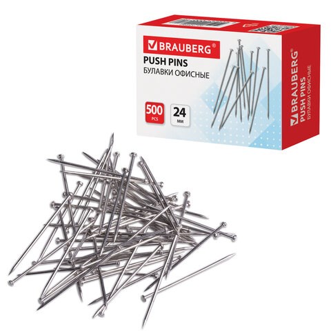 Булавки универсальные BRAUBERG, 24 мм, 500 штук, в картонной коробке, 220562