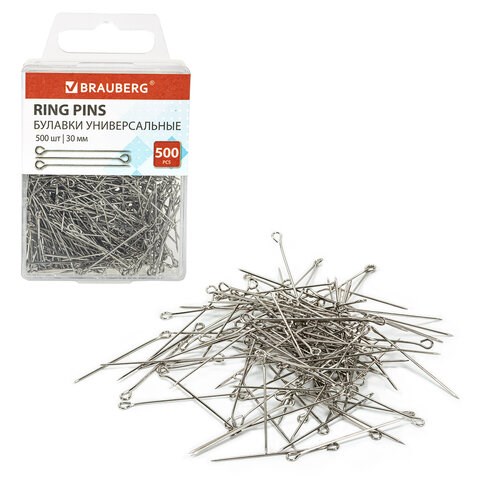 Булавки универсальные с головками-петельками BRAUBERG, 30 мм, 500 штук, в пластиковой коробке, 271319