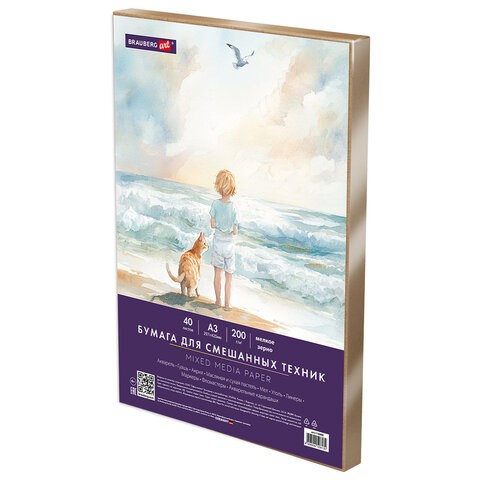 Бумага для смешанных техник (акварель/карандаш/пастель) MixMedia, 200 г/м2, А3, 40 л. в коробе, BRAUBERG ART CLASSIC, "Море", 116966