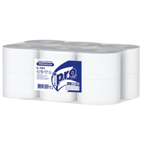 Бумага туалетная 170 метров, PROtissue (T2) PREMIUM, 2-слойная, белая, КОМПЛЕКТ 12 рулонов, С191