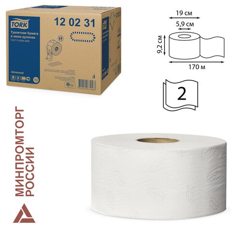 Бумага туалетная 170 метров, Tellus/TORK (Система T2) ADVANCED, КОМПЛЕКТ 12 рулонов, 2-слойная, белая, 120231