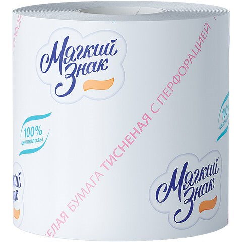 Бумага туалетная бытовая, 51 м, МЯГКИЙ ЗНАК, на втулке, С28, белая