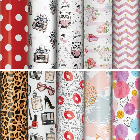 Бумага упаковочная подарочная мелованная "For Women", 70x100 см, 10 дизайнов ассорти, ЗОЛОТАЯ СКАЗКА, 591915