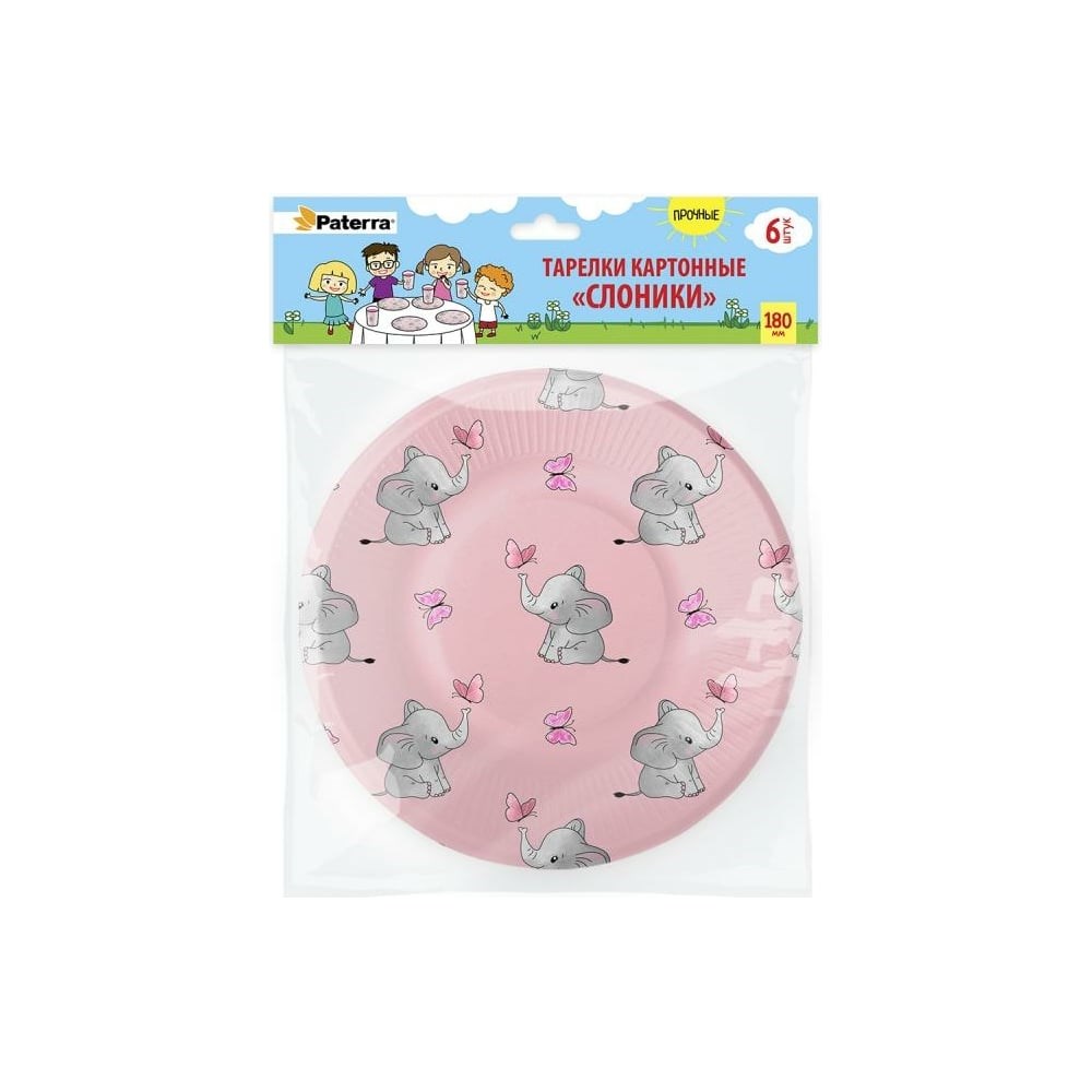 Бумажные тарелки PATERRA СЛОНИКИ 180 мм, 6 шт в упаковке 401-879
