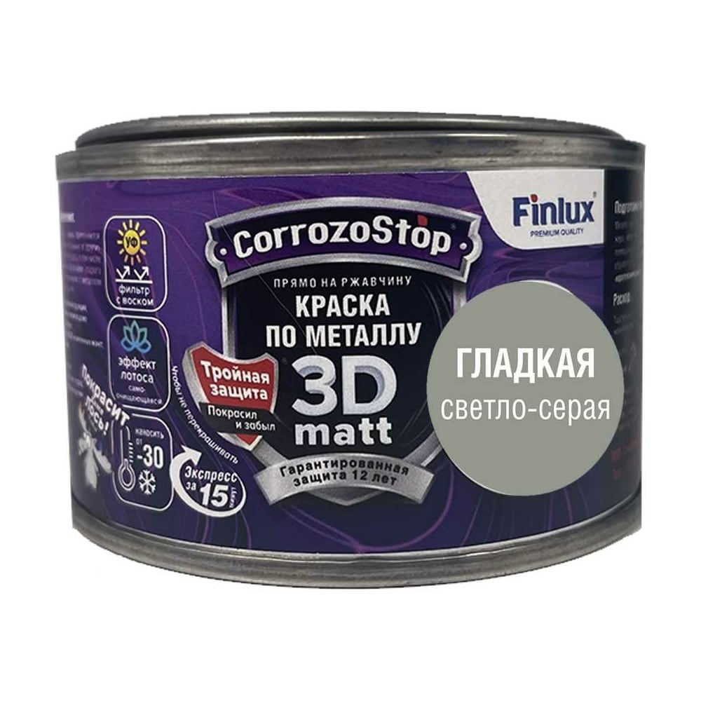 Быстросохнущая грунт-эмаль по металлу, ржавчине Finlux F-115 CorrozoStop