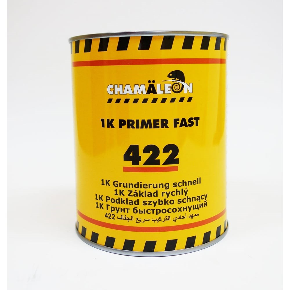 Грунт-наполнитель CHAMAELEON 1К, быстросохнущий, 1 л 14225 - 422 грунт-наполнитель однокомпонентный нитросинтетический с антикоррозийными добавками, обладающий высокой заполняющей способностью, не содержит хроматов и свинца.Может использоваться на старых отполированных двухкомпонентных лакокрасочных поверхностях, грунтах, а также непосредственно на стальных, алюминиевых и оцинкованных поверхностях.Быстро сохнет и легко поддается шлифованию, обеспечивая существенную экономию времени.Важно! Не наносить на старые термопластичные лакокрасочные поверхности.Расход: 5-7 м2/л.Для достижения рабочей вязкости материала, рекомендуем арт. 13225 - CHAMAELEON Растворитель стандартный 1л.(Предназначен для разбавления лакокрасочных материалов до требуемой вязкости перед их применением. Совместим со всеми акриловыми материалами и базовыми эмалями. Позволяет обеспечить оптимальные условия для нанесения и высыхания покрытий, достаточную вязкость и плотность наносимых материалов.)Важно: не рекомендуется нанесение в качестве покрытия грунтов на водной основе. 422 - это более быстрая версия 402.Применяйте при температуре воздуха свыше + 10 °C и относительной влажности воздуха до 75%.