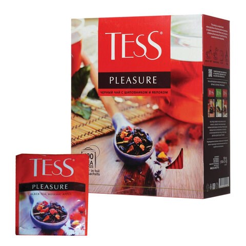 Чай TESS "Pleasure" черный с шиповником, яблоком, лимонным сорго, 100 пакетиков в конвертах по 1,5 г, 0919-09