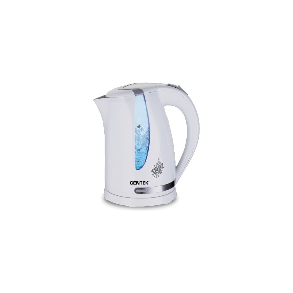 Стильный прибор, который кипятит воду за несколько минут, чайник Centek СТ-0040, объемом 1,8 л и мощностью 2200 Вт имеет скрытый нагревательный элемент для безопасного нагревания воды.Материал корпуса – высококачественный пластик. Пластиковая ручка чайника не перегревается и не скользит в ладони во время использования.Сливной носик обеспечивает удобное переливание воды.Плотно прилегающая к корпусу крышка обеспечивает герметичность при закипании. Она открывается одним нажатием кнопки на ручке, что помогает избежать контакта кожи с паромАвтоматическое отключение после окончания нагрева позволяет заниматься другими делами, не находясь постоянно рядом.Защита включения без воды предупреждает поломку.Внутренняя LED-подсветка.Вращение базы на 360°.Отсек для шнура, расположенный на дне базы, экономит место при хранении.