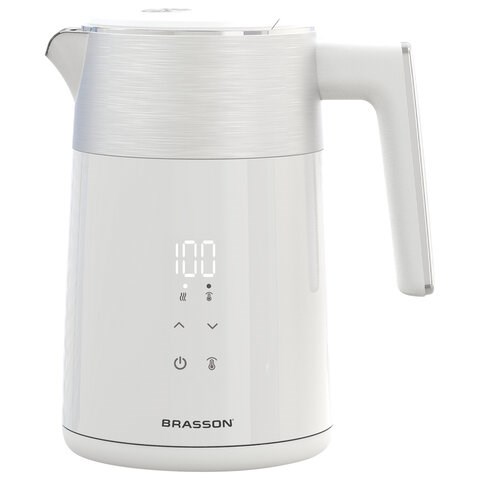 Чайник с двойными стенками, терморегулятором и дисплеем BRASSON (БРАССОН) KT-264, 1,5 л, 2200 Вт, 7 температурных режимов, белый, 455193