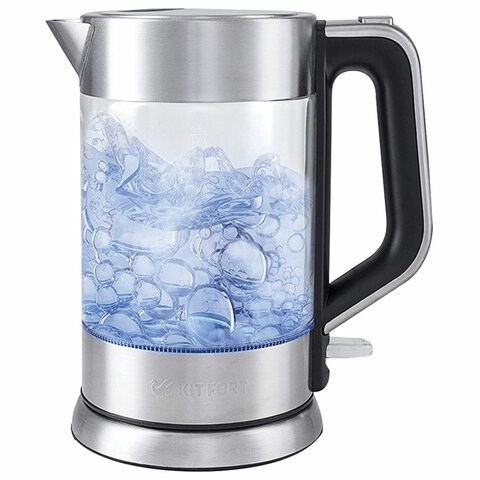 Чайник KITFORT КТ-617, 1,5 л, 2200 Вт, закрытый нагревательный элемент, стекло, серебристый, KT-617