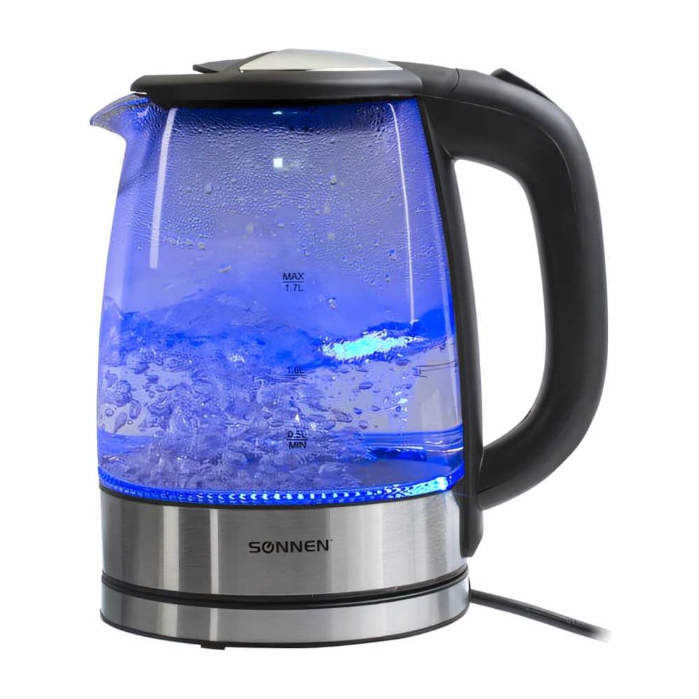 Чайник SONNEN KT-1788 1,7л черный 454349 предназначен для дома или офиса. Изготовлен из термостойкого стекла, благодаря чему устойчив к высоким температурам. Скрытый нагревательный элемент увеличивает срок службы устройства. Крышка чайника имеет кнопку открывания, поэтому удобна в использовании.