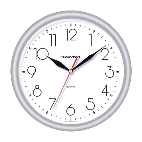 Часы настенные TROYKATIME (TROYKA) 21270212, круг, белые, серебристая рамка, 24,5х24,5х3,1 см