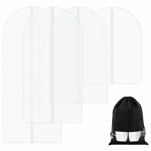 Чехлы для одежды выполнены из высокопрочного полупрозрачного гипоаллергенного материала - полиэтиленвинилацетата (PEVA). Такой материал надежно защищает одежду и дает возможность легко найти нужные вещи. Полупрозрачный белый цвет идеально подойдет для любого гардероба и сделает его более эстетичным.